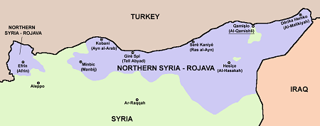 De Facto border of Northern Syria-Rojava (Western Kurdistan)