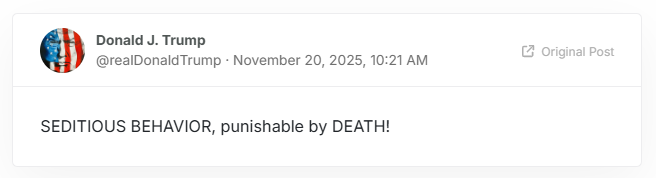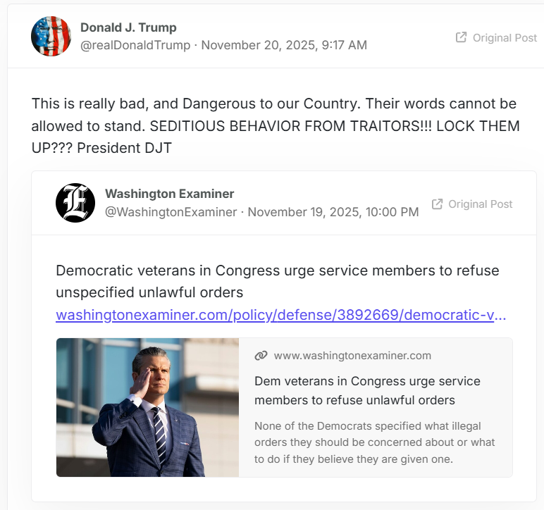On that day, these Seditious Six posted a video on X entitled Don’t Give Up The Ship.  This is what Treason looks like: