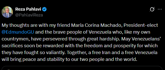 Pahlavi sent this post shortly after Maduro’s capture: