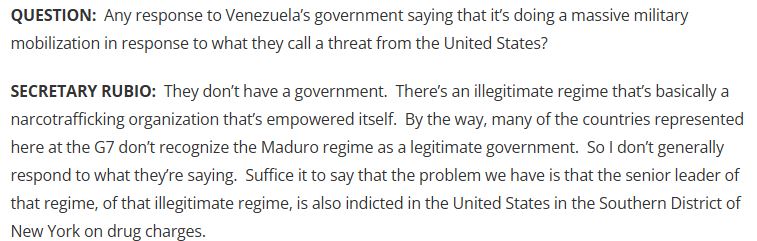 Repeatedly, SecState Rubio has reaffirmed this – such as during a press conference last November: