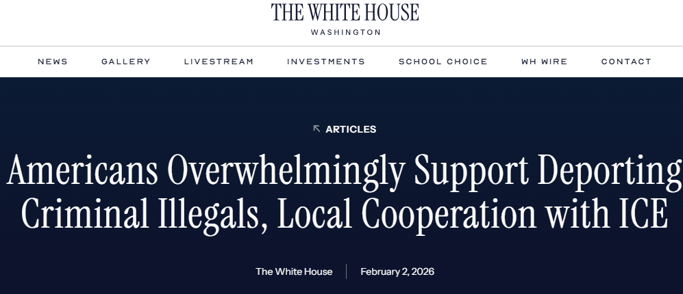 What The White House is reporting is by independent pollster Cygnal: National Poll: Deportation & ICE Overwhelmingly Supported by Voters – and Democrats Pay a Political Price on the Issue.