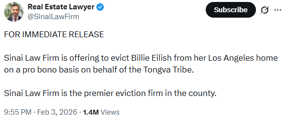 Law Firm Offers To Help Native American Tribe Evict Billie Eilish From Their Land