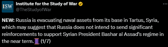 tartus-evacuationOn November 27, a powerful force led by Islamist group Hay’at Tahrir al-Sham (HTS) launched an offensive in northern Syria. Taking advantage of the dysfunctional Assad regime forces – the Syrian Arab Army (SAA) – and Russia’s preoccupation with its grinding war in Ukraine, HTS and its Turkish-supported allies advanced to the south – and swiftly took the city of Aleppo from Syrian strongman Bashar Al-Assad, his SAA and his Russian backers.