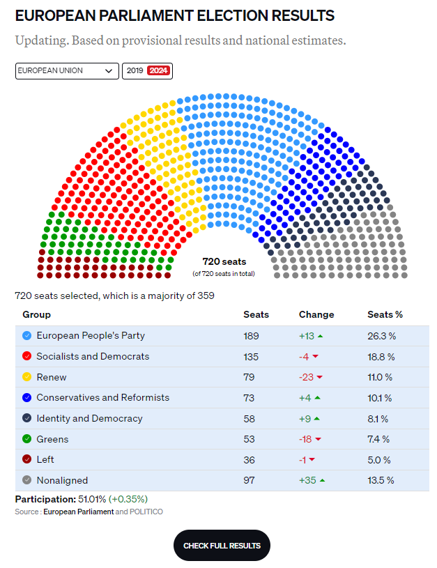 “Germany's conservatives finished first in the European Union's elections, as far-right momentum within the bloc has sent France's leadership scrambling.