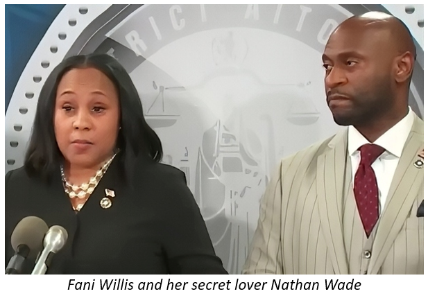 secret-loverThe news out of Georgia is getting interesting. According to one of the co-defendants in the case that Fulton County DA Fani Willis brought against Trump and others who challenged election results, Willis’s special prosecutor, Nathan Wade, not only raked in $654,000 but is also Willis’s lover-boyfriend.