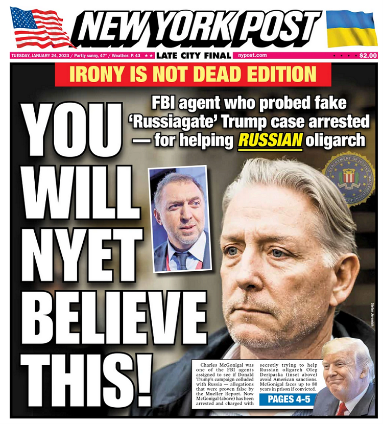 Where this goes beyond the ordinary corruption that periodically crops up among people with too much power, too few morals, and too little accountability is that McGonigal was one of the people investigating Trump over the Russia Hoax, while Deripaska employed Christopher Steele, whose false dossier seeded the Russia Hoax.