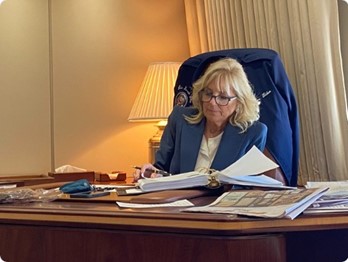 According to a Nancy Cook article at Bloomberg, the person with whom Joe doublechecks every decision he makes is his unelected wife, Jill Biden, a school teacher who wrote a shoddy dissertation to justify a truly meaningless doctorate in education. Writes Cook: