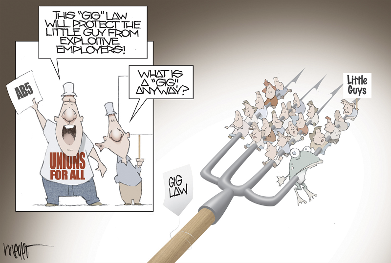 I mean what could cause Democrats to cross the aisle here. What could state Democrats possibly due to create a pathway for a hated man like Trump to a run to flip the state? Oh, could it be their nonsensical freelance law—AB5—that has reaped havoc on the state?