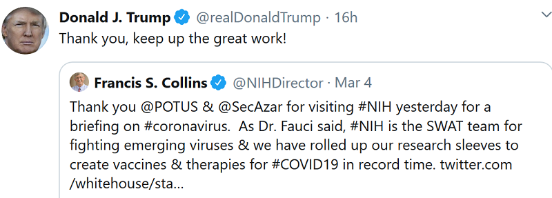 trump-tweet-on-coronavirus-helpWhen I was a professor of pathology at the University of California San Diego, I was one of the first molecular virologists in the world to work on coronaviruses (the 1970s). I was the first to demonstrate the number of genes the virus contained.