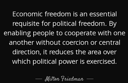 friedman-quote-on-freedomSince the rise during the late 1800s of Socialism, New Liberalism, and Progressivism it has been conventional to scorn economic liberty as vulgar and optional—something only fat cats care about.