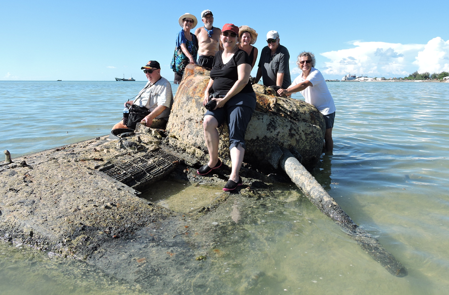 The spearhead of the assault was led by the Marine’s Charlie Company, 1st Corps Tank Battalion and its M4-A2 Shermans on what was codenamed Red Beach. One particular Sherman sank a few yards offshore and lies there to this day. It’s easy to wade out and clamber upon it, as these friends of mine did when I brought them there in 2016.