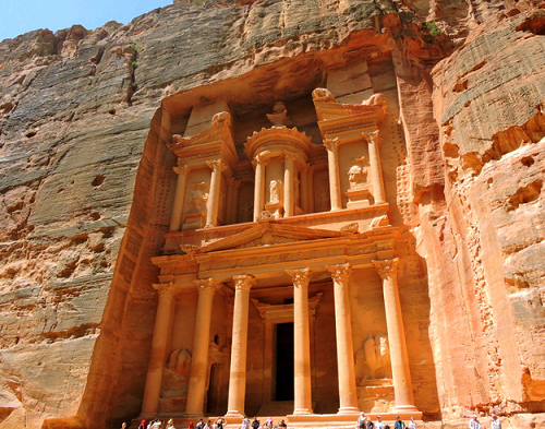 city-of-petraThe 2,000 year-old Rose Red City of Petra was the religious center of an ancient Arab tribe named Nabataeans. They didn’t build huge temples such as this – they carved them out of cliffs of rose-red sandstone in their hidden mountain sanctuary east of the Dead Sea in present-day Jordan.