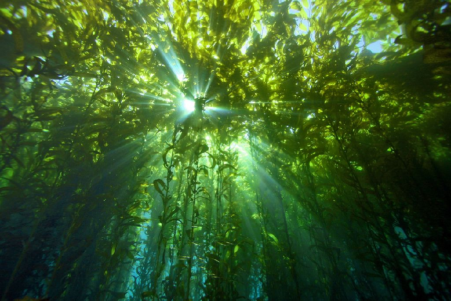 I learned how to scuba dive off the California coast, particularly in the waters off Catalina Island. Kelp plants grow to spread their leaves on the ocean surface, but it’s underwater you experience their true beauty. They rise from the bottom rocks of the shallow ocean floor near the coast as a forest, and when the sun’s rays shine through them, it is a magical sight to see them turn the color of gold.