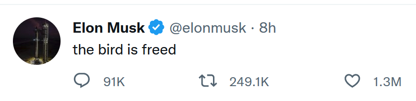 Then yesterday evening (10/27), immediately after finalizing his personal ownership of Twitter came: