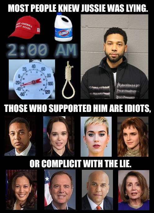 jussie-was-lyingSo, last May Roseanne Barr gets fired within hours by ABC after SJWs freak out condemning one single short tweet as “racist” (which it wasn’t, she was ridiculing ValJar’s looks, not her race, thought she was Saudi, not black).