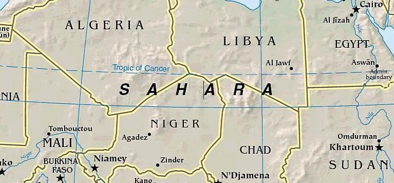 sahara-map In the center of the Sahara is the country of Niger.  We’re going to cross it from one end to the other to find one of our world’s special places, of achingly lonely beauty, of fascinating and friendly peoples, and mysterious lost cities, hidden oases, and camel salt caravans.