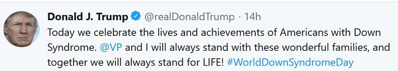 trump-tweet-032119 What a contrast to the Death Cult the Dems have become, who insist mothers kill such children in their own womb for not deserving to live.