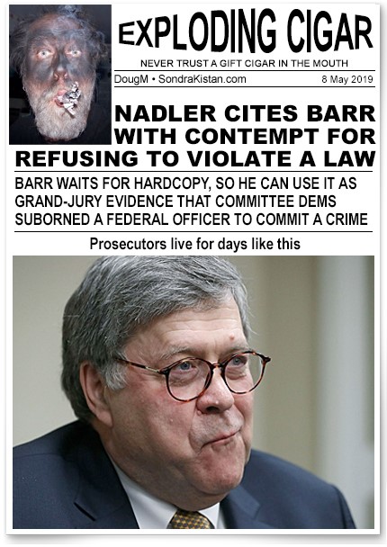With the collapse of Bobby Mueller in failing to find any evidence of Trump-Russia “collusion,” the Dem Witch Hunt that Schifty and Fatso were planning to perpetuate with endless subpoenas and investigations has collapsed also.  As CTH explains in Failure to Launch (3/11), they’ve surrendered.