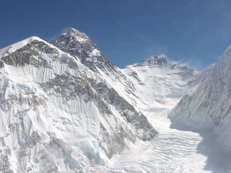 Western Cwm of Everest at 7,000m/23,000ft, Everest to left, Lhotse straight ahead