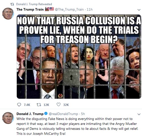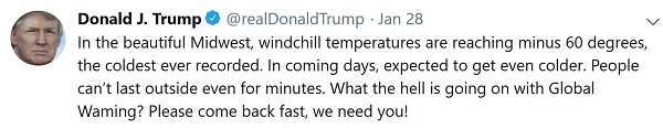 trump-tweet-012819 Yet their demented Warmist fanaticism is merely one path of many in their descent into madness this week, in which Democrats have become a party of Psychotic Fascism.  No longer a political party but a criminally evil gang bereft of any morality, just thuggish hate and lust for fascist power.