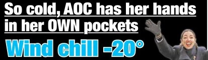 How cold is it?  It’s so cold that, the New York Post joked about “AOC “(Alexandria Occasional-Cortex)  on its cover yesterday (1/31):