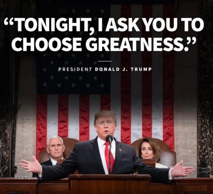 choose-greatnessThere are no adequate words.  All there is, is to join the chorus of acclamation that President Trump last night (2/05) delivered to Congress and America the greatest State of the Union address ever in our history.