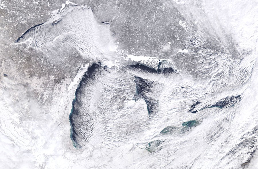 Natural color NASA Sat Photo of the Great Lakes January 27, 2018