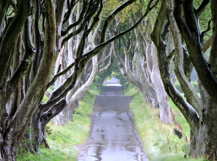 dark-hedgesYou’ve seen this spooky place called King’s Road in HBO’s The Games of Thrones – but where is it and what is it really? It’s in Country Antrim in Northern Ireland near the town of Armoy. Originally it was the driveway to a mansion built in 1775 by James Stuart, descendant of King James I of England (1566-1625), who lined either side with beech trees. Now almost 250 years old, their branches intertwine eerily, giving rise to its name of “Dark Hedges,” and legends of ghosts haunting it like the “Grey Lady.”