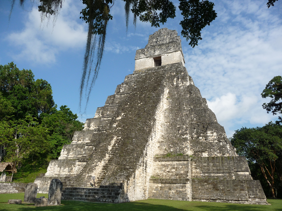 maya-ruinsThis is Temple IV at the ancient Mayan capital of Tikal, now in northern Guatemala. It was from the top of Temple IV that the shot in the original 1977 Star Wars movie was filmed of the Millennium Falcon landing (at 44 seconds) near jungle temples (Temples II and III) at the Rebel Base on the moon of Yavin 4.