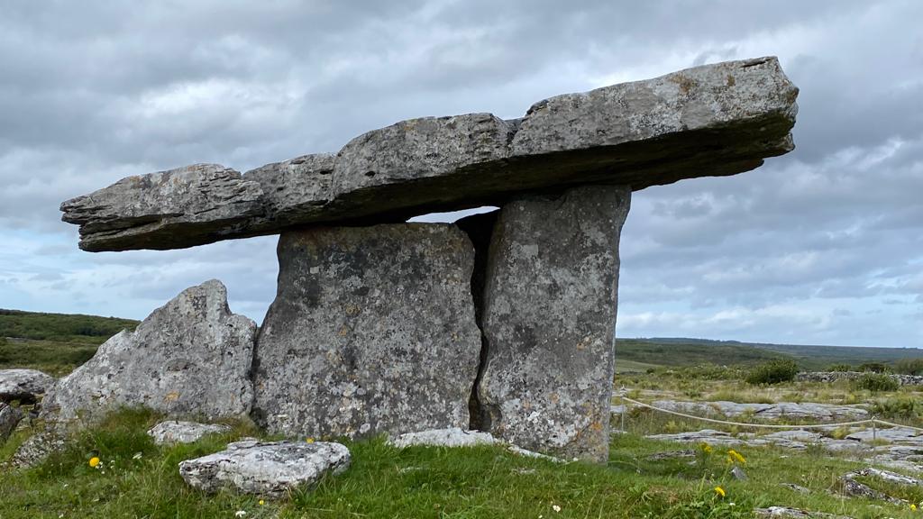 Eventually the mound weathered away revealing the stone “skeleton” which was a sacred shrine for the Megalithic Irish all the way to the medieval Celts even though in a remote barren rocky region of far western Ireland found now in County Clare.