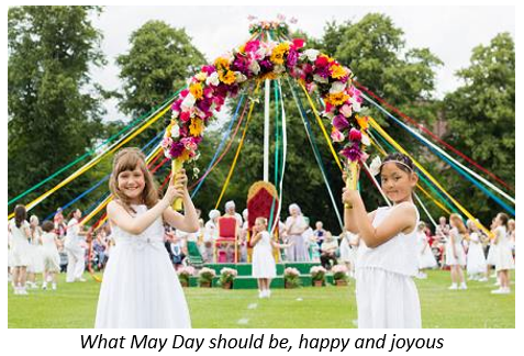 For millennia, especially in Europe, the First of May was a happy, joyful celebration of life after winter, with dancing around a Maypole and crowning a pretty girl with flowers as Queen of May.