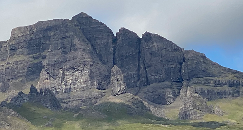 the-old-man-of-storrEnter “The Old Man of Storr” in Wikipedia, and it wants to talk about the steep rocky face of the mountain in the background called “The Storr.”  Google or Duckduckgo the images and you’ll get all these photos of rocky pinnacles and spires.  So where’s the Old Man?  It’s the most famous feature on Scotland’s Isle of Skye, yet you never see the Old Man himself.  Well, here he is.