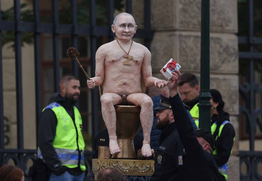 potty-pootA Czech activist group is auctioning a sculpture of Russian President Vladimir Putin sitting naked on a golden toilet — with proceeds from the sale set to go toward buying a combat drone for Ukraine.