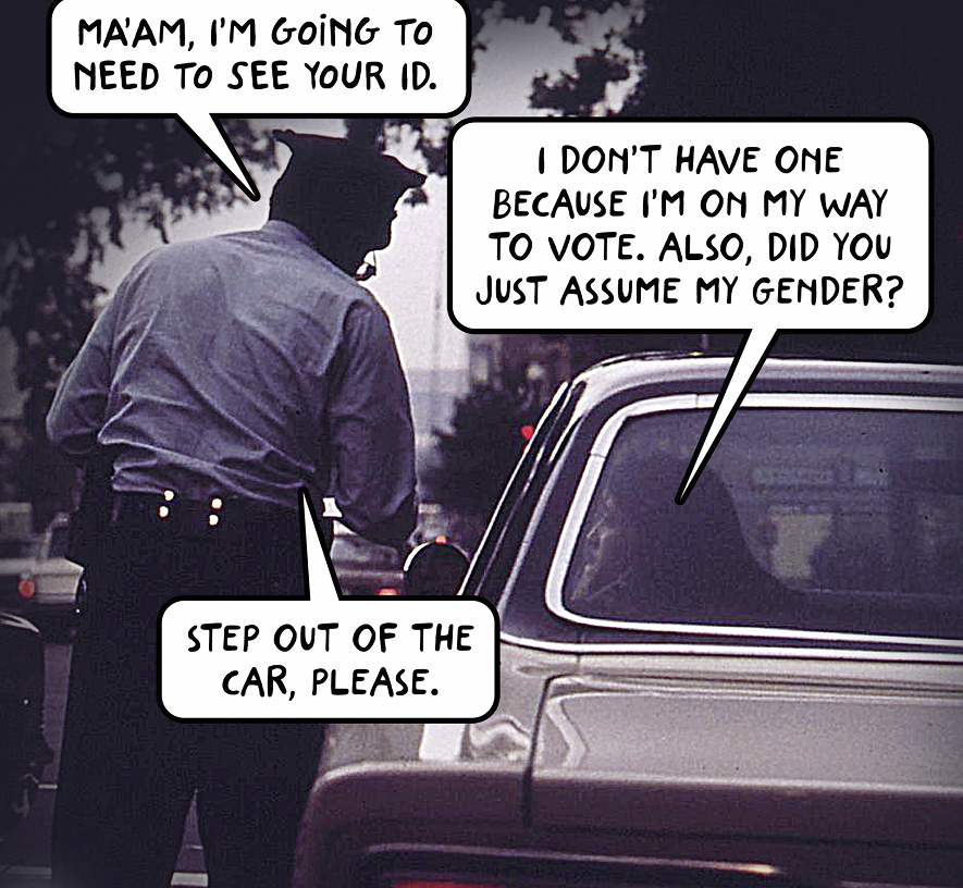 Not her lucky day, a police car was behind her. To the hoots and laughter of the MAGA folk, two policemen came to ticket her. Instant karma!